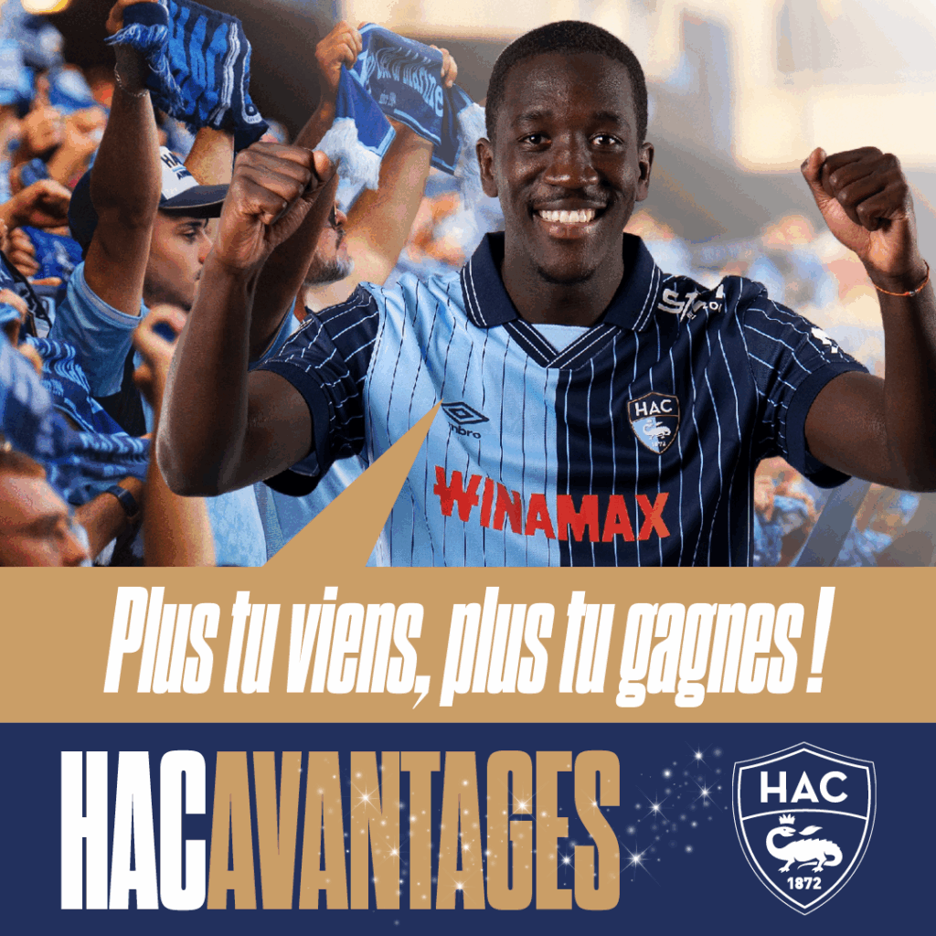 • A la fin de la saison, si tu as cumulé 15 matchs au Stade Océane, tu pourras aussi participer au tirage au sort HAC Avantages et tenter de remporter 2 abonnements pour la saison 2026 – 2027 !